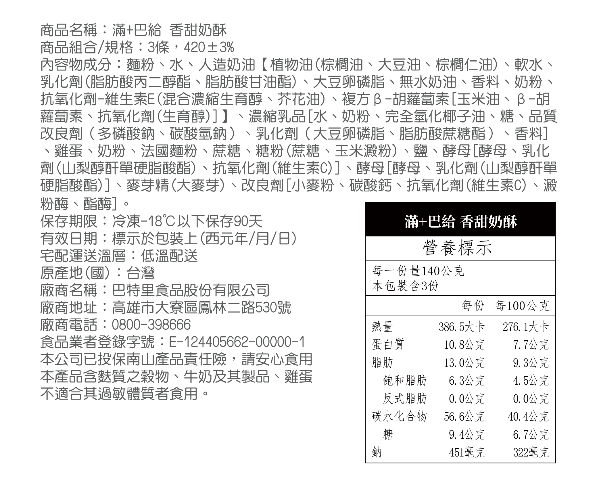 滿+巴給 香甜奶酥