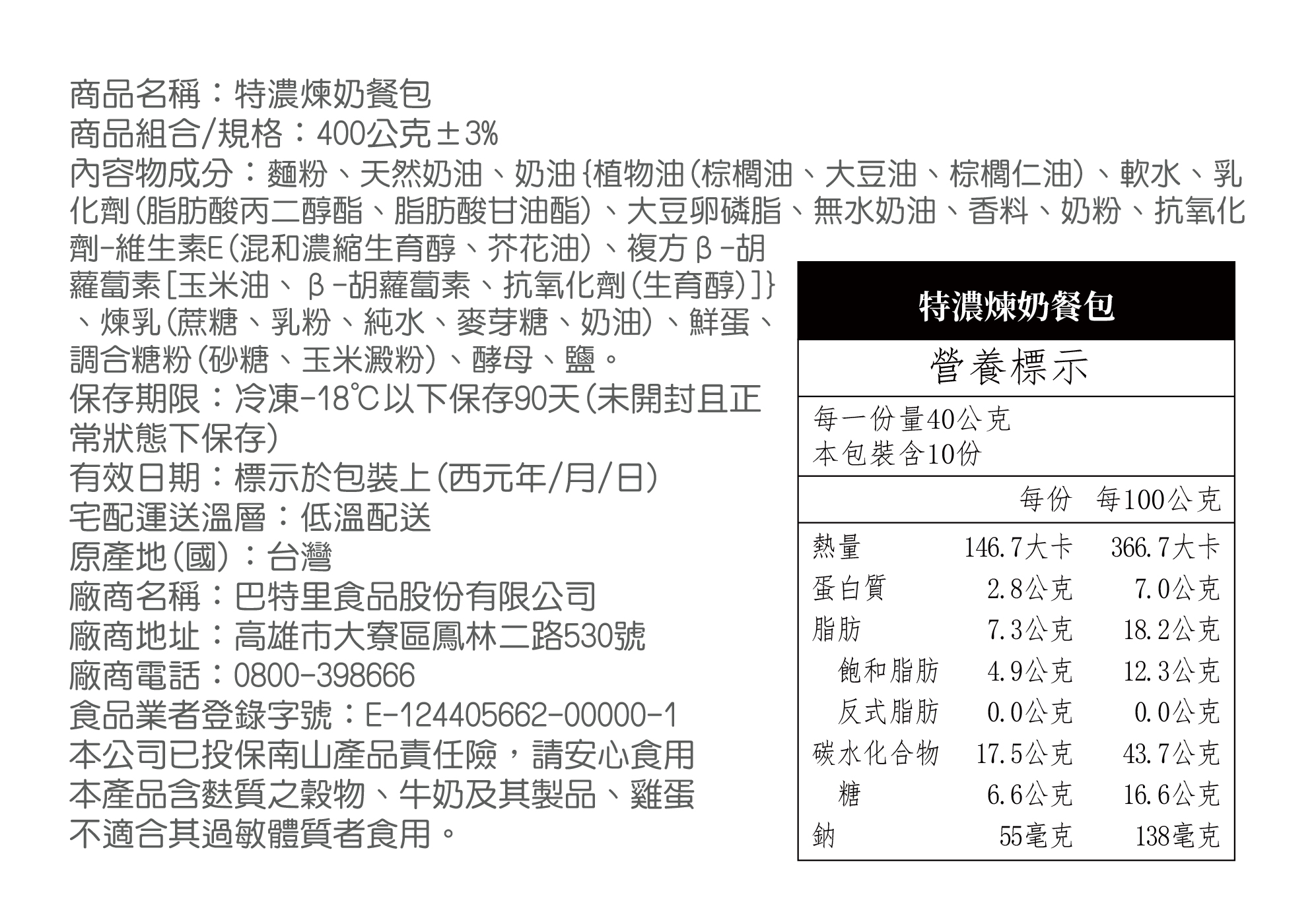特濃煉奶餐包